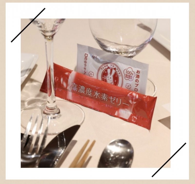 熱いプレーを繰り広げた後はお料理とお酒を楽しんでいただくため、ゴルフコンペでも大人気だった株式会社新菱様の高濃度水素ゼリーと、二日酔い対策のお供にアミノ酸サプリアスガールもご用意。