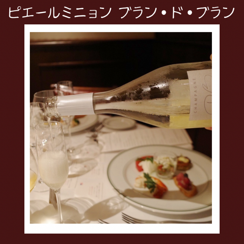 乾杯は銀座のフランス料理レストラン、ドミニク・ブシェトーキョーのために造られた特別なシャンパンで、ピエールミニョン ブラン・ブランからはじまり、人気のマリリンワインズがラインナップしました。