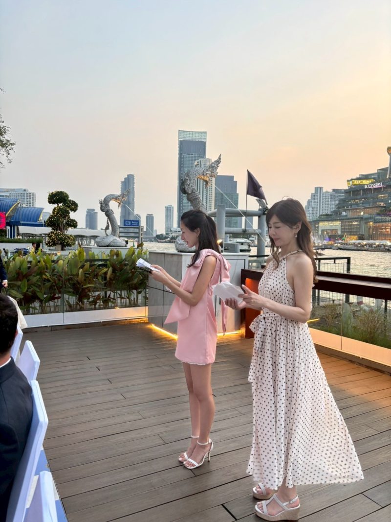 チャオプラヤ川を背に、素晴らしい景色、夕日と心地よい風、最高のコンディションの中表彰式の開催です。