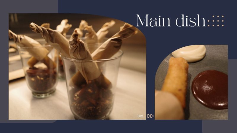北海道産、エゾ鹿のクルスティアン根セロリのピューレ、スパイス赤ワインソースは、ユニークな提供方法で、味覚だけでなく視覚や驚きを楽しんでいただける内容。
