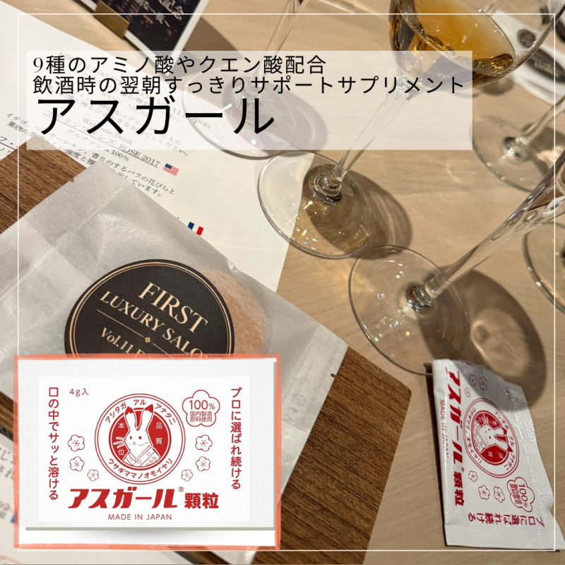 たくさんお酒を飲む時の必須アイテムであるアミノ酸サプリ、アスガールはFIRST.Lのパーティーイベントでも欠かせない必須アイテムです。