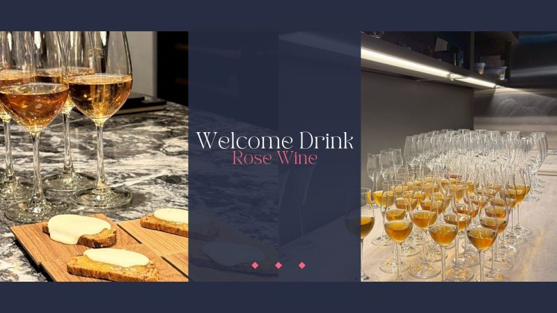 ウェルカムドリンクは、マリリンワインズのロゼ。